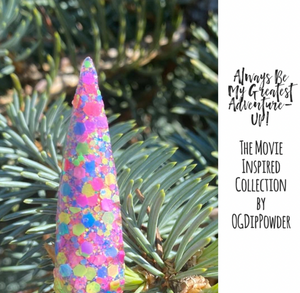 Always Be My Greatest Adventure is a mix of pink, purple, blue , green, and yellow matte chunky glitter.