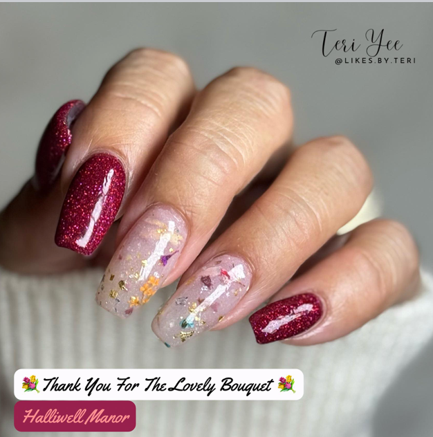 Halliwell Manor is an ultra fine glitter that shifts red, berry and purple