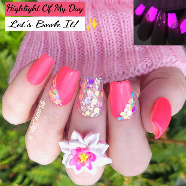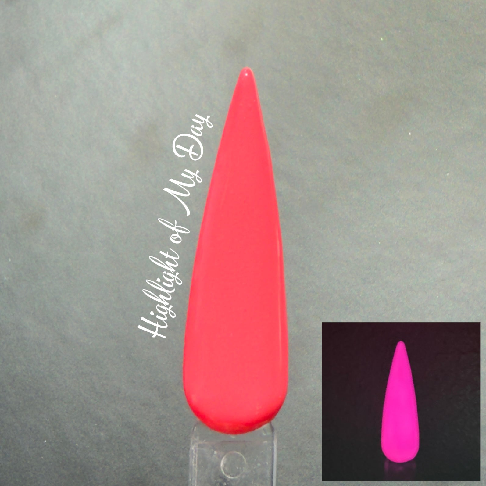 Highlight Of My Day is a flat pinky coral that glows in the dark