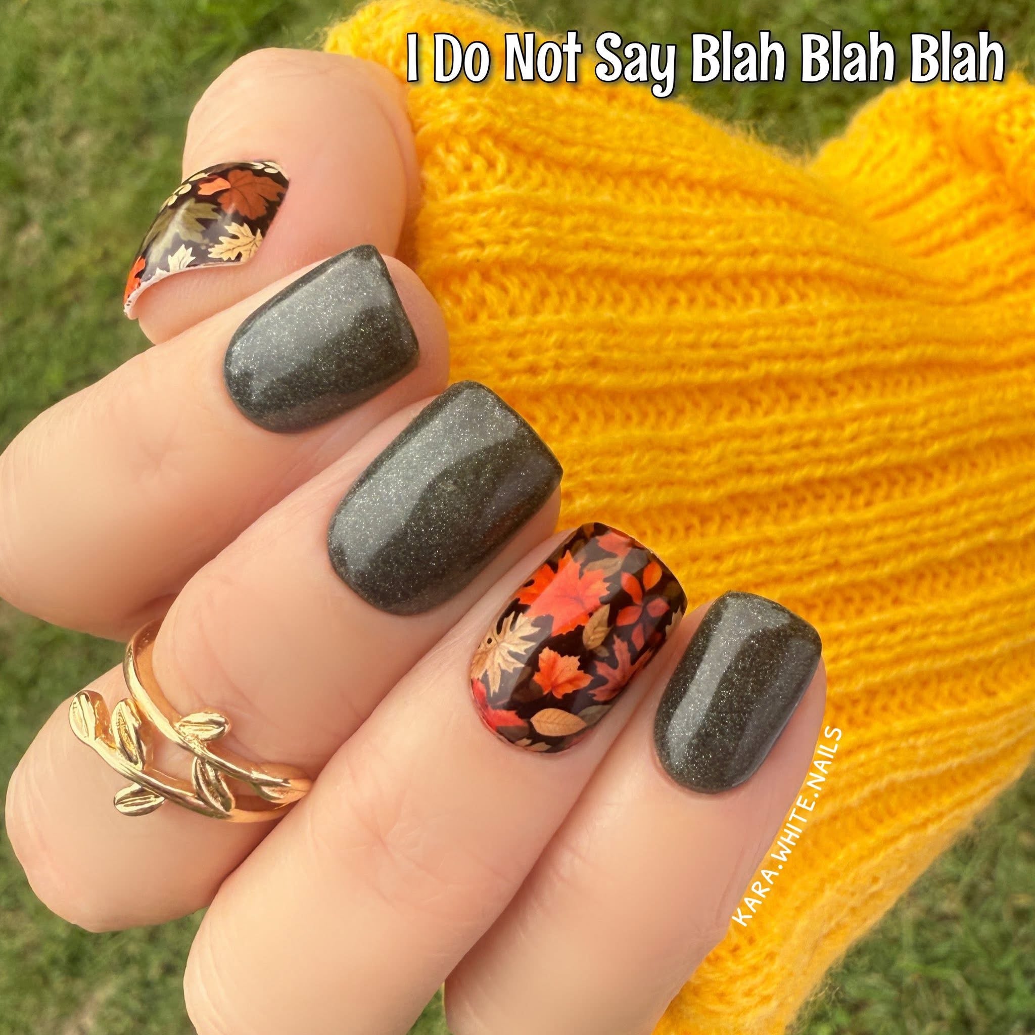 I Do Not Say Blah Blah Blah is a shimmery grayish green when cold and a soft lime green when hot.