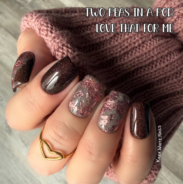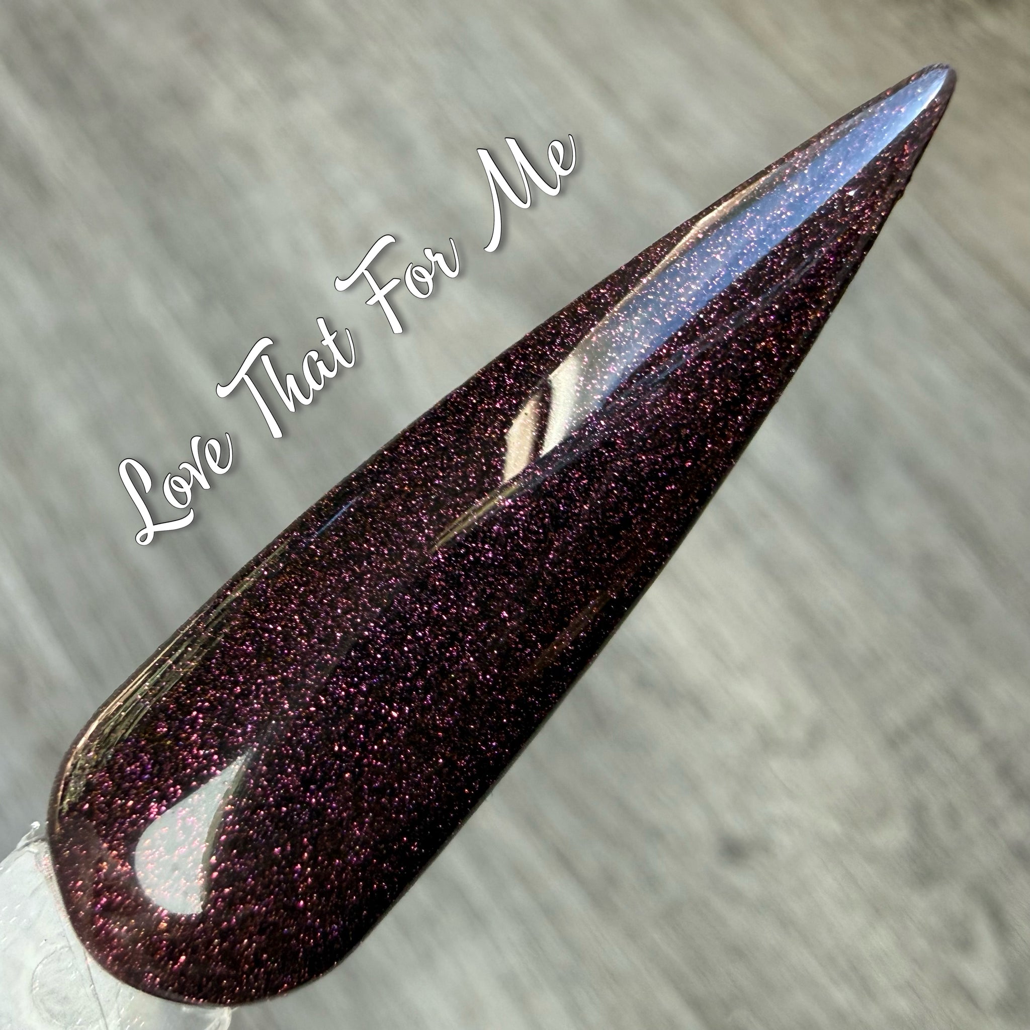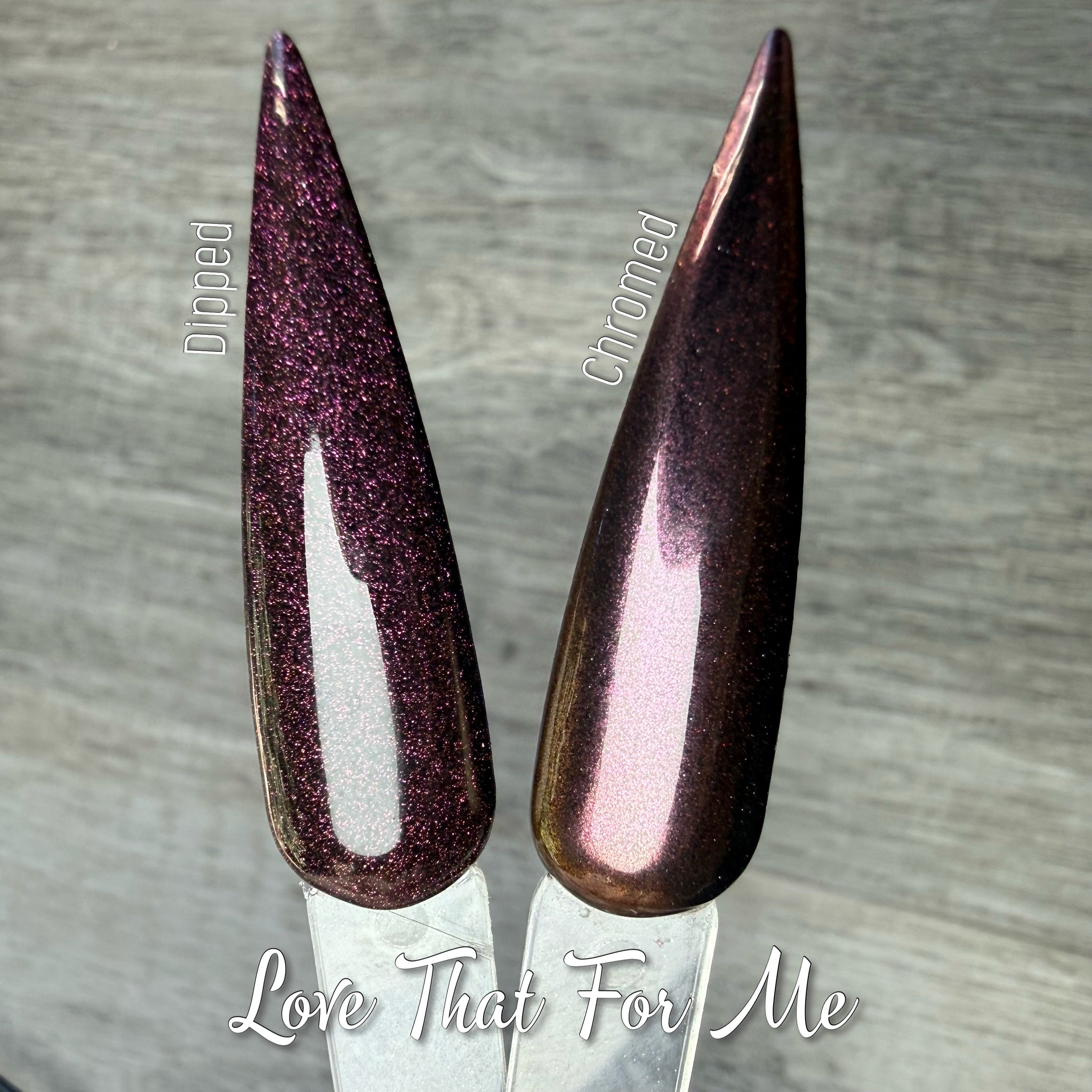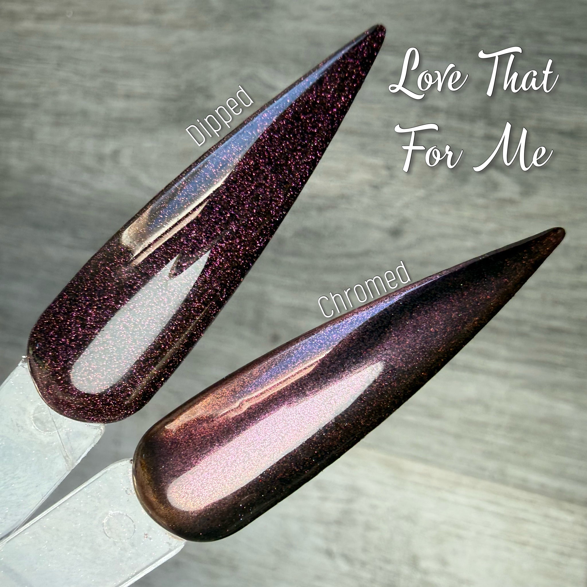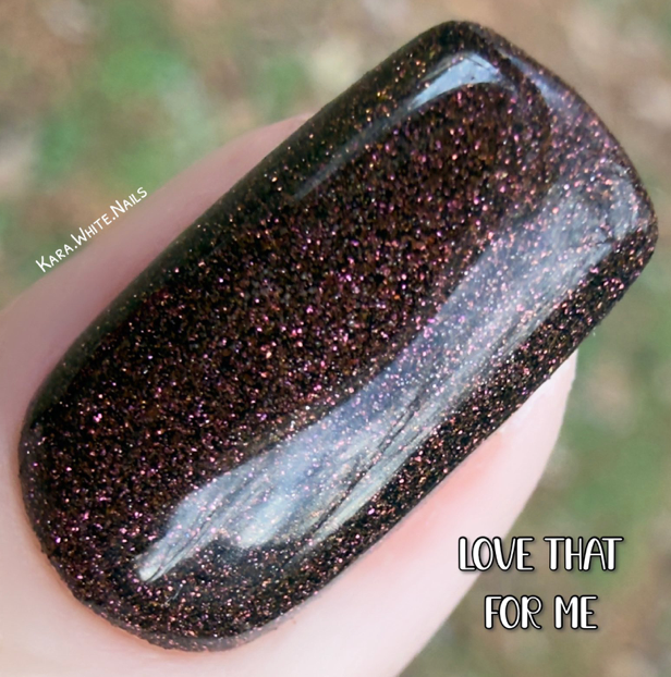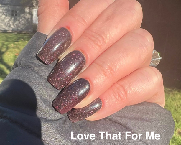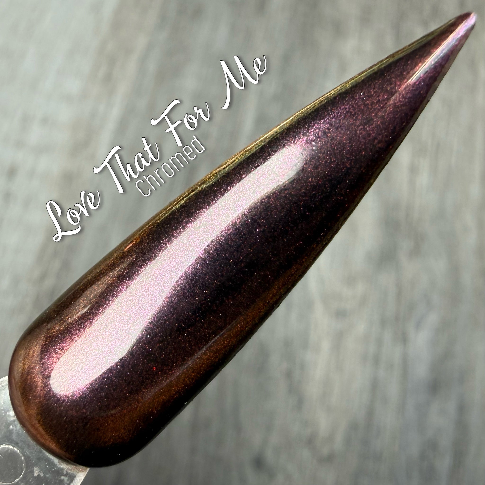 Love That For Me has a black flat base with a chrome shift that is a reddish pink shift