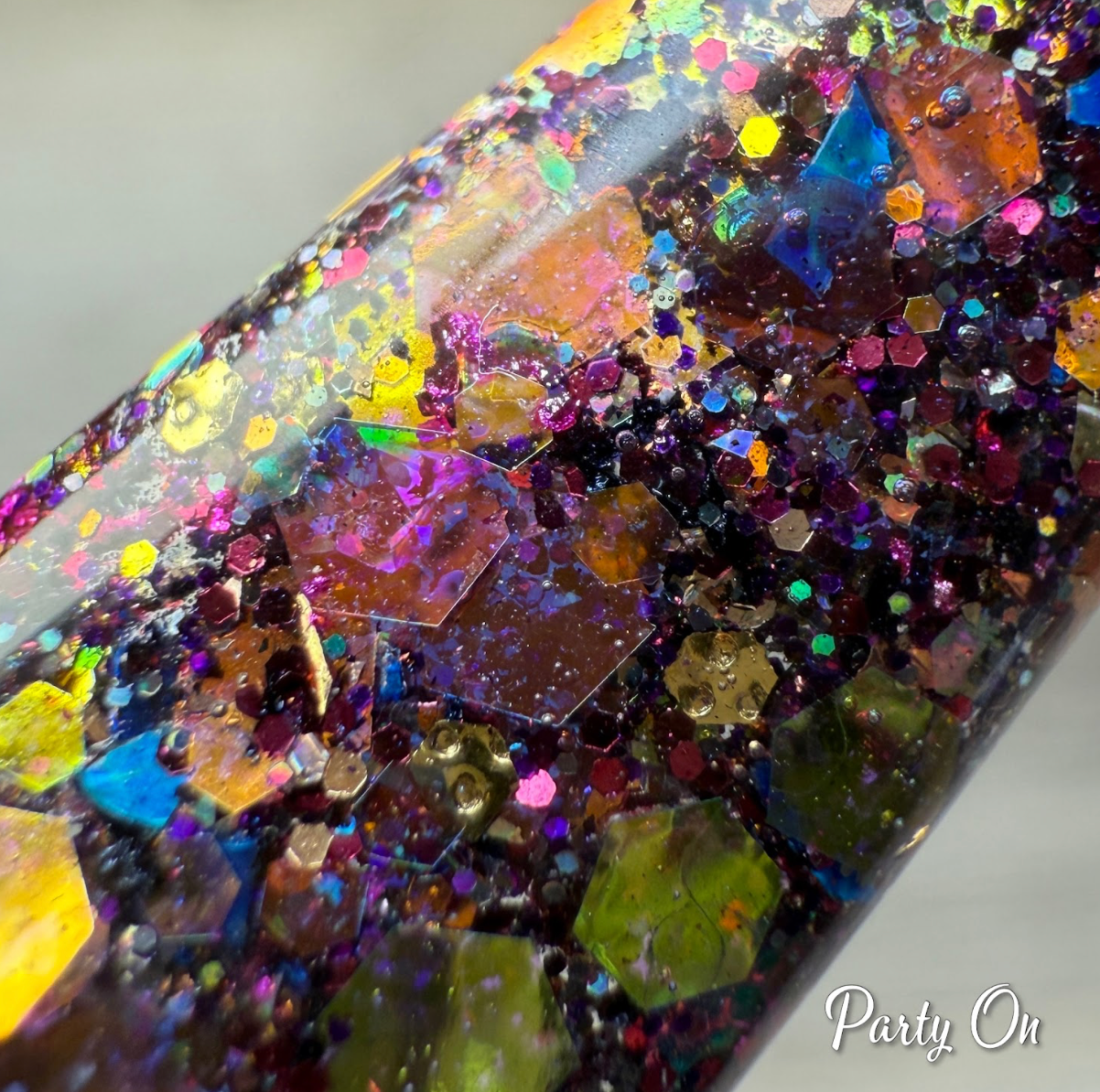 Party On is a mix of chunky glitter, foil, and flakes blue, purple, gold, and navy