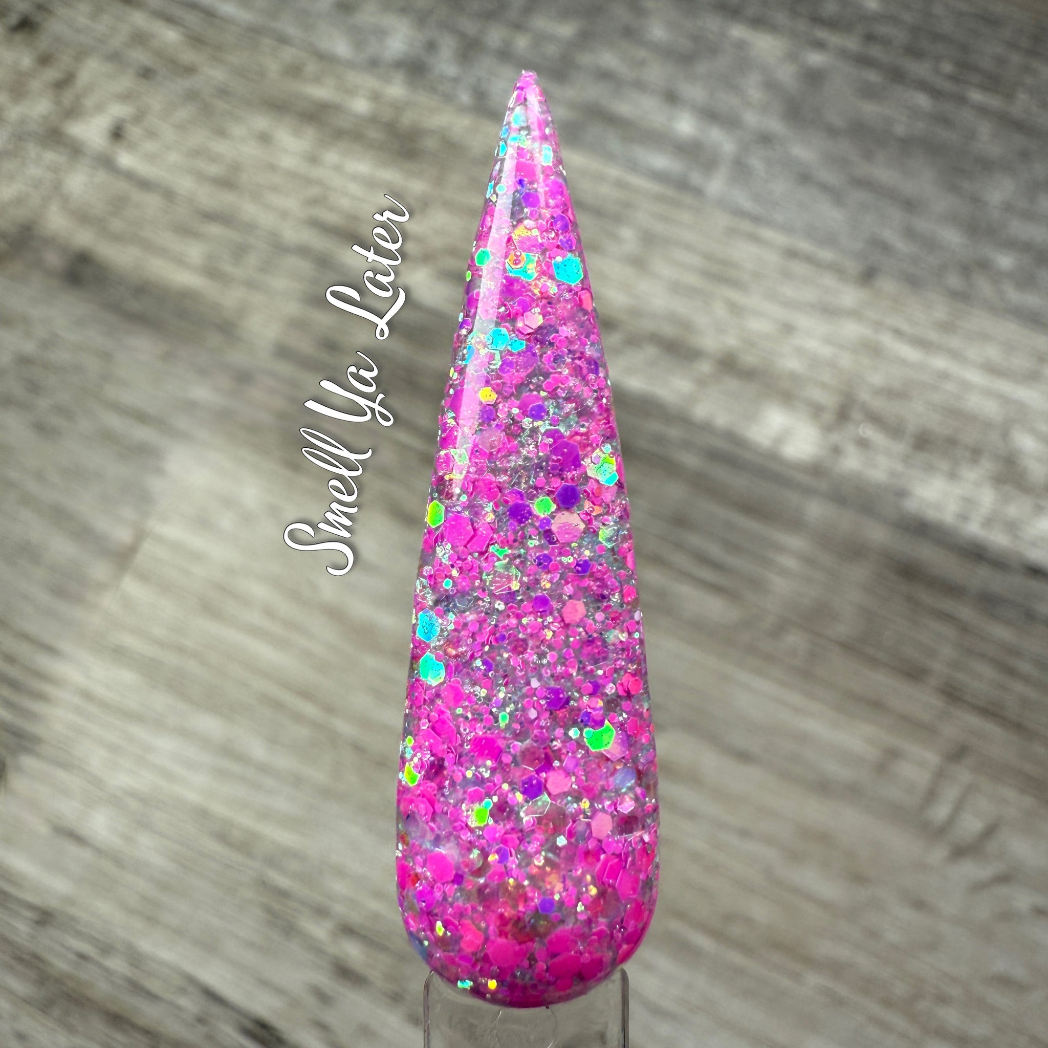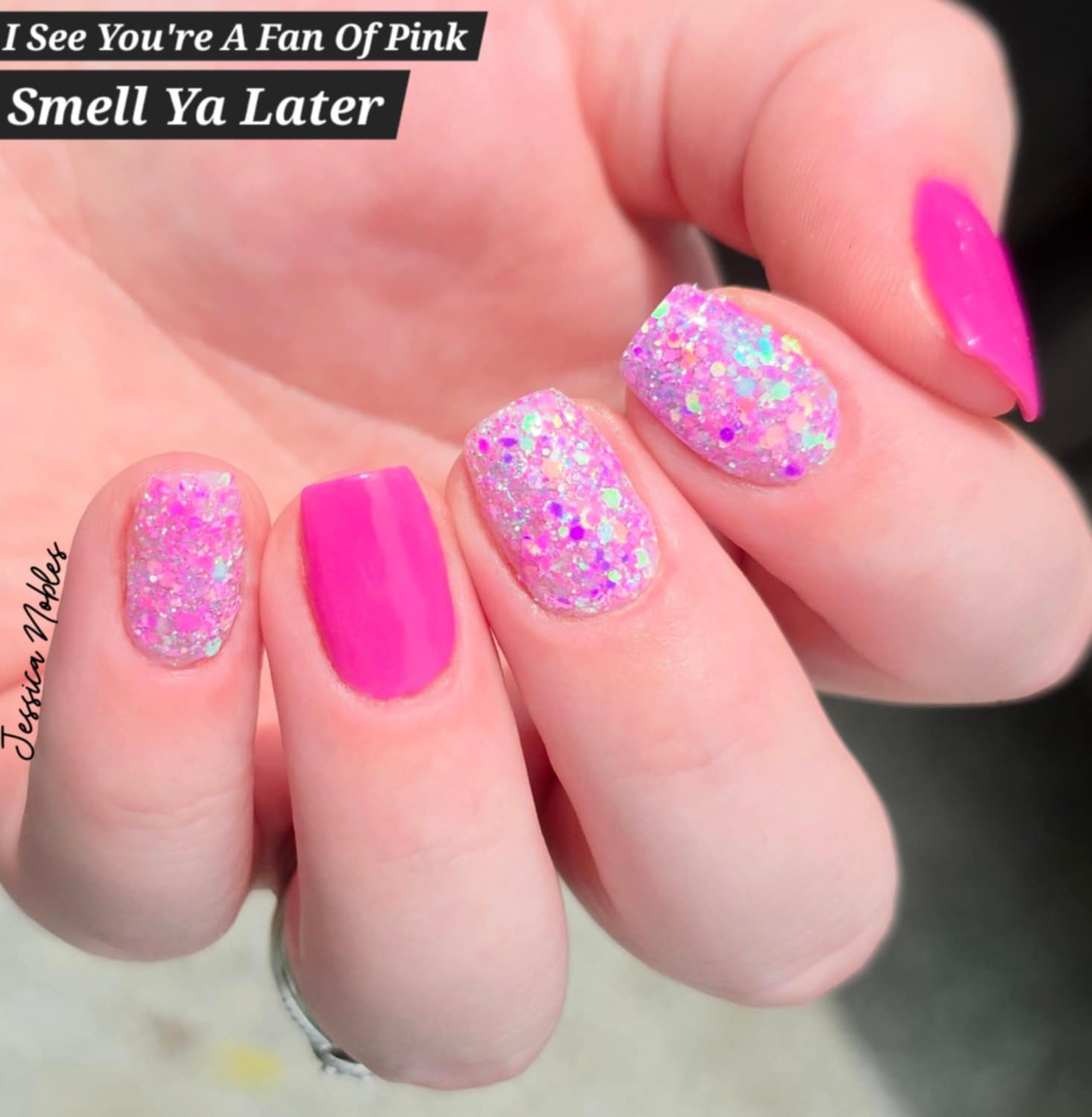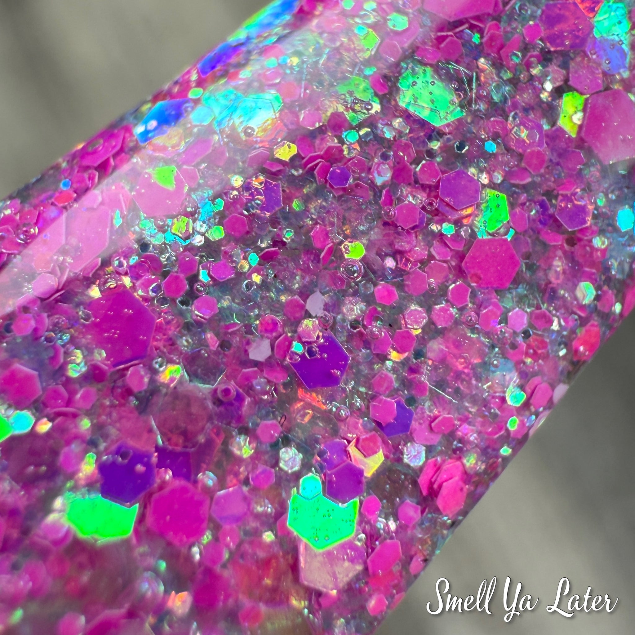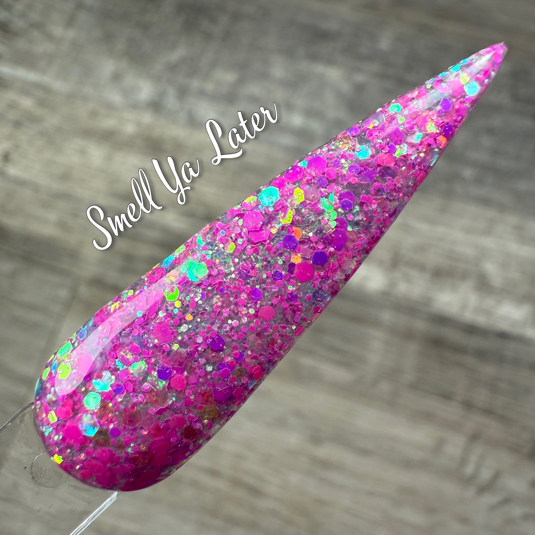 Smell Ya Later is a mini chunk matte glitter mix with color shifting iridescent glitter