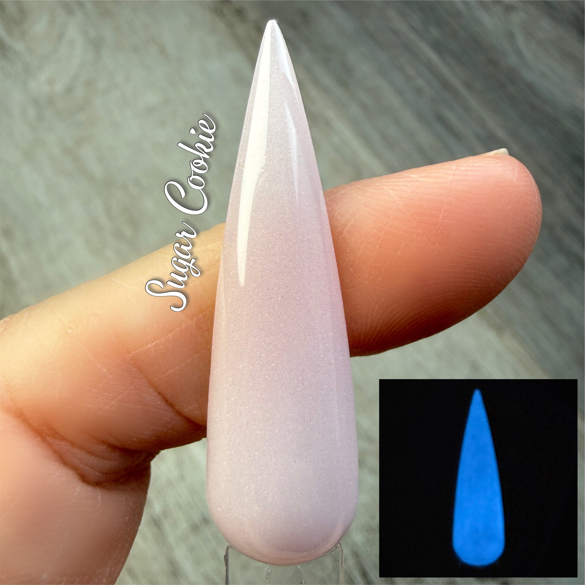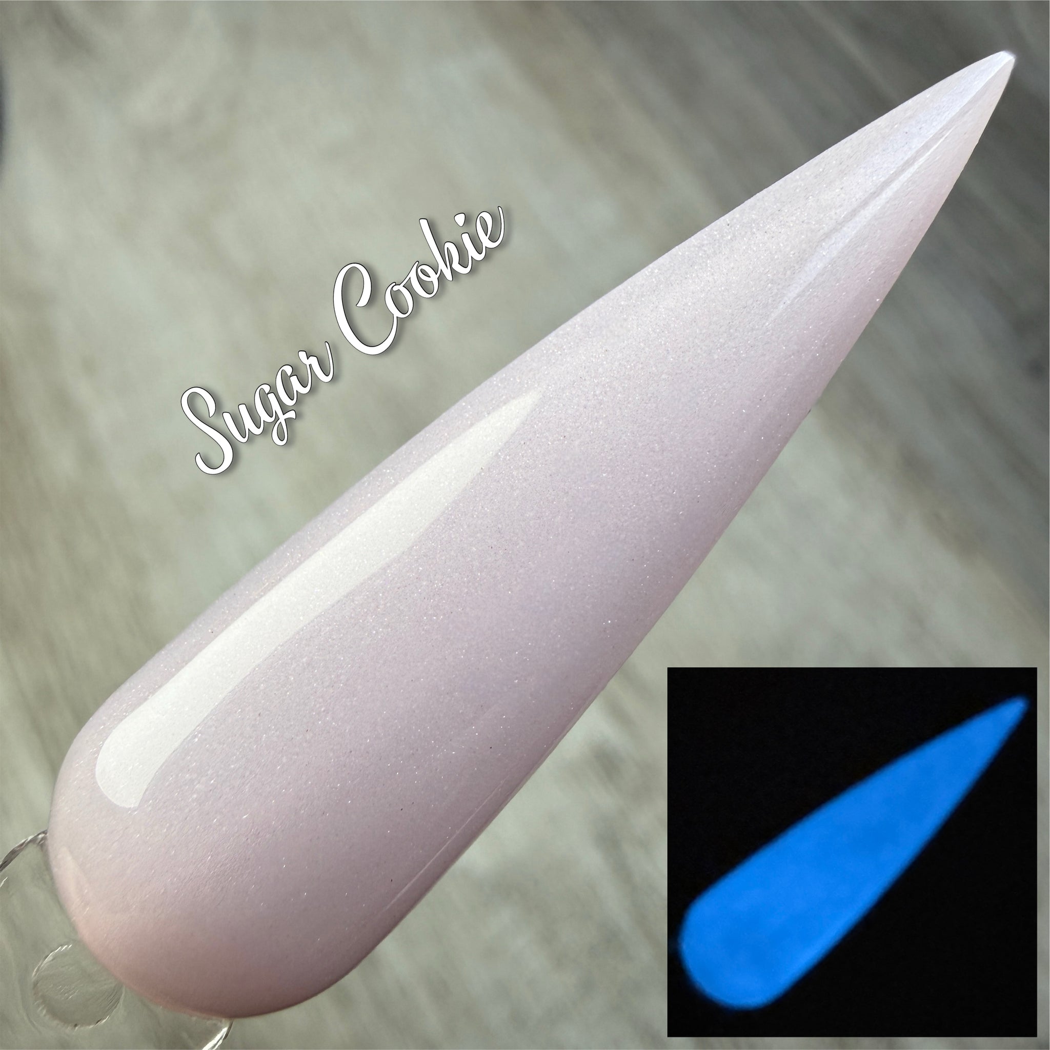 Sugar Cookie is a shimmery whitish pink that glows