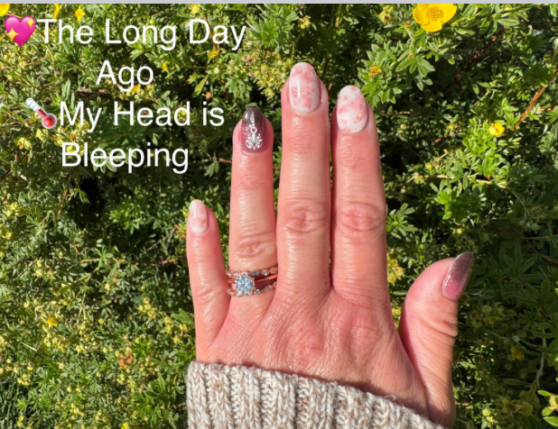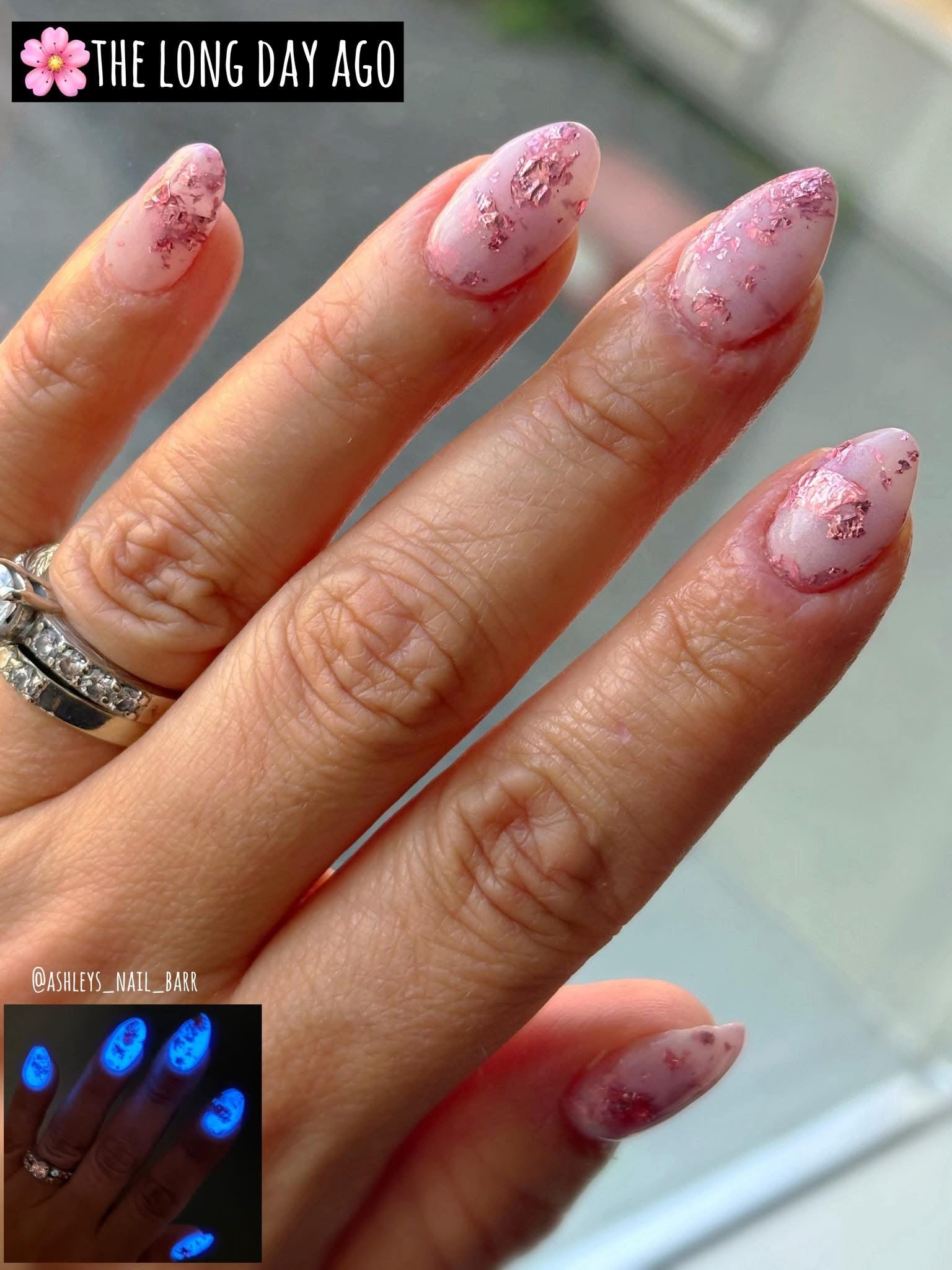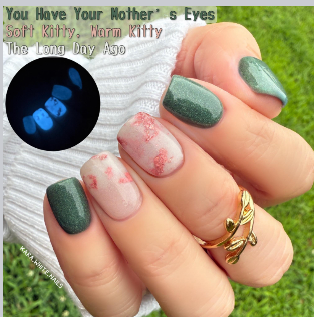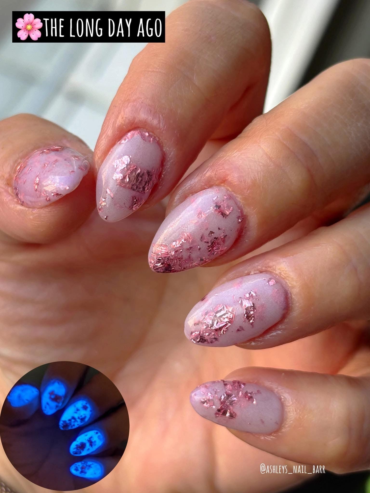 The Long Day Ago is a soft white with rose gold foil throughout. It glows in the dark.