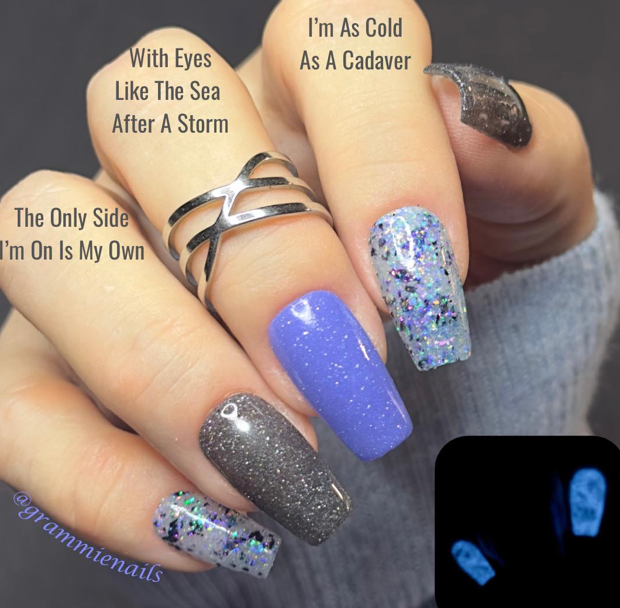 This dip powder is a part of the Wednesday Inspired Collection. It is a TV inspired collection.