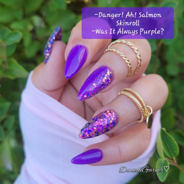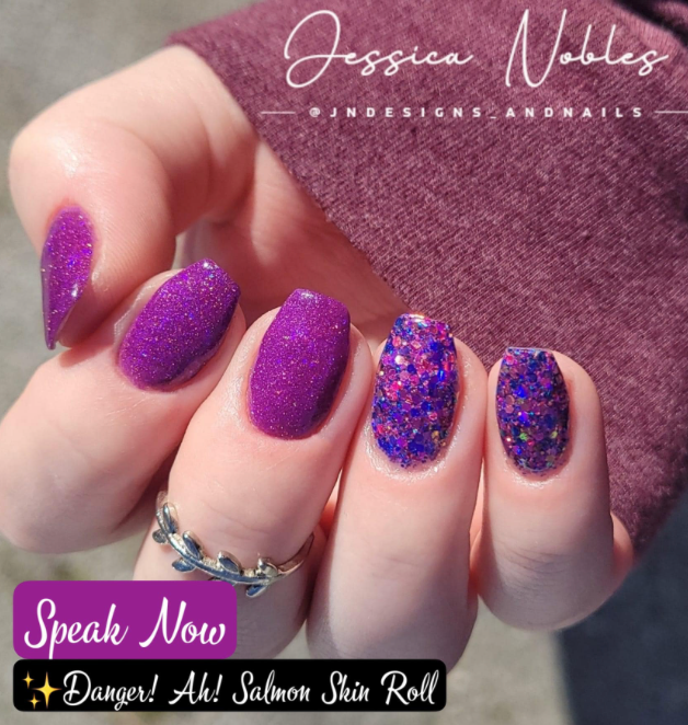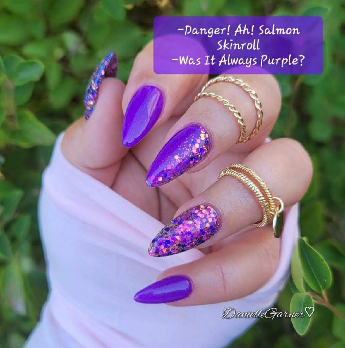 Ah!, Salmon Skin Roll is a mix of pink and purple color shifting mini chunk glitter.