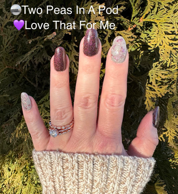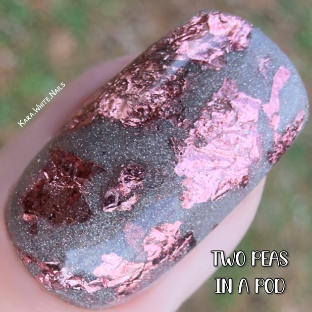 Two Peas In A Pod has a shimmery taupe base with rose gold foil throughout.