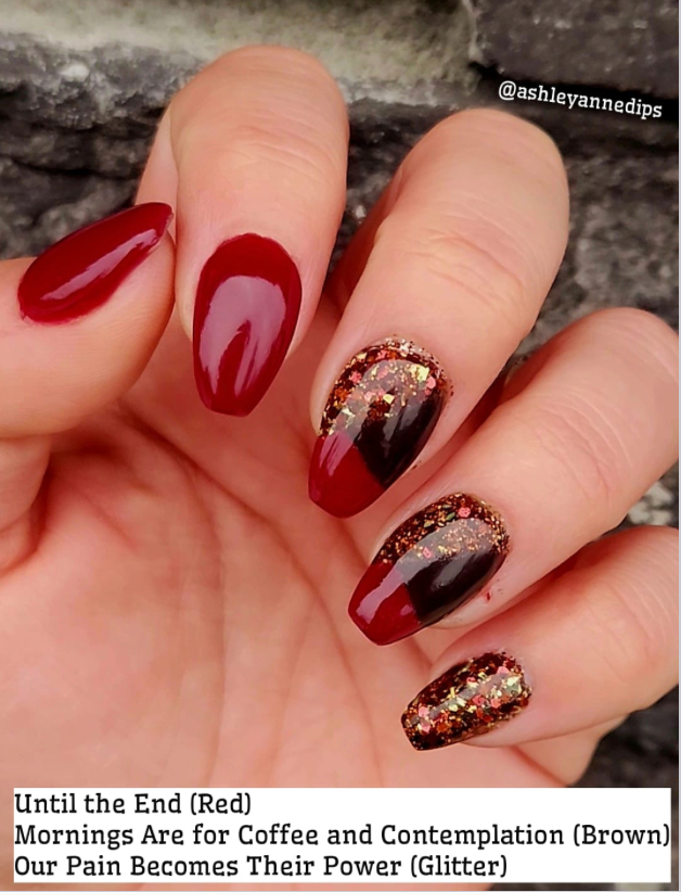 Until the End Dip Powder is a reddish solid without shimmer. It has a touch of pink in it.
