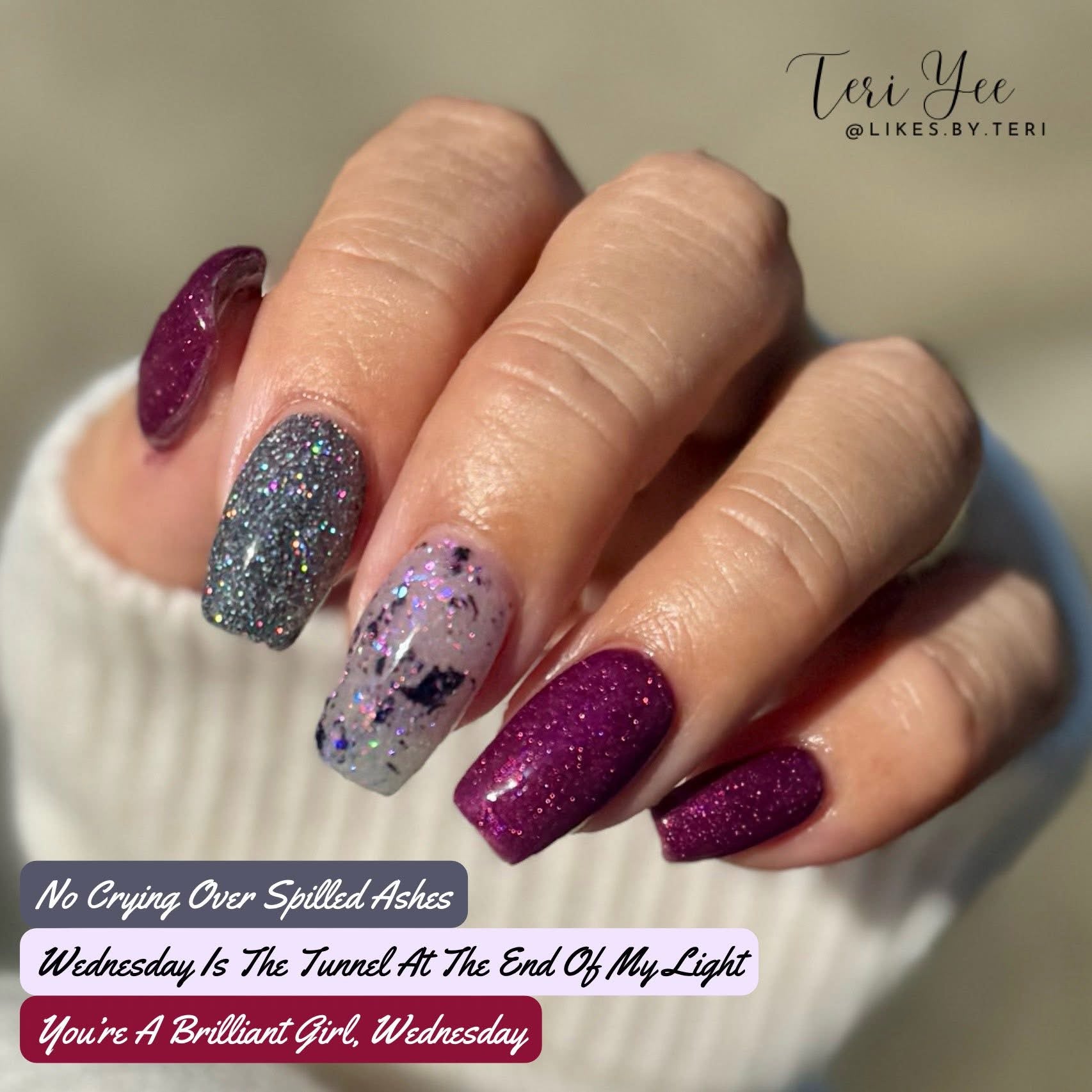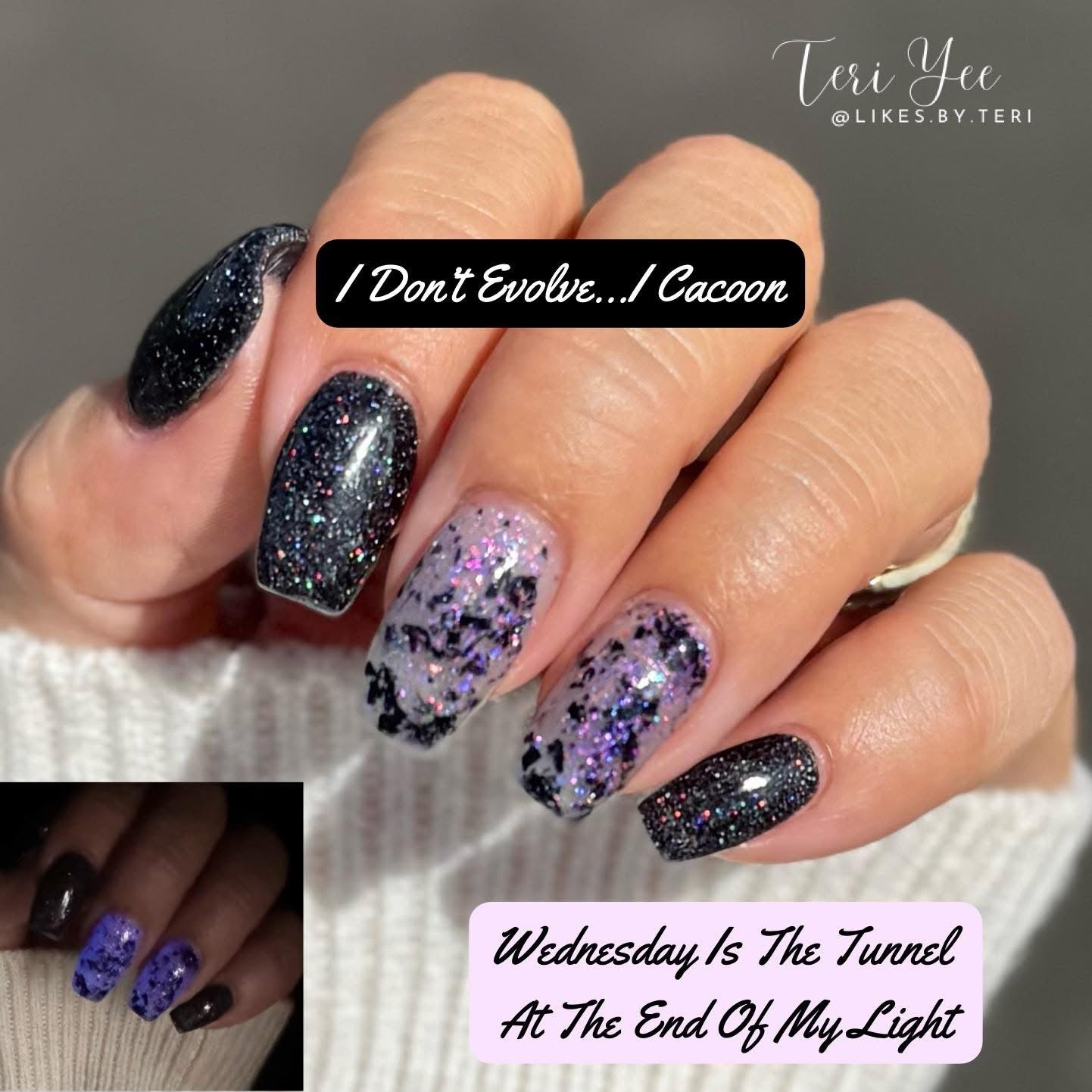 This dip powder is a part of the Wednesday Inspired Collection. It is a TV inspired collection.