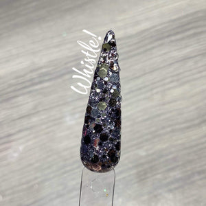 Whistle! is a mix of black, gun metal, and silver chunky glitter.