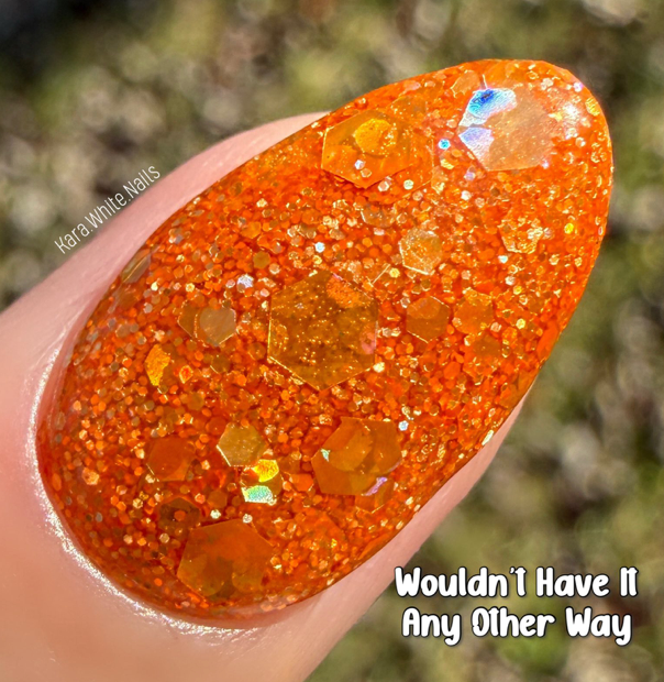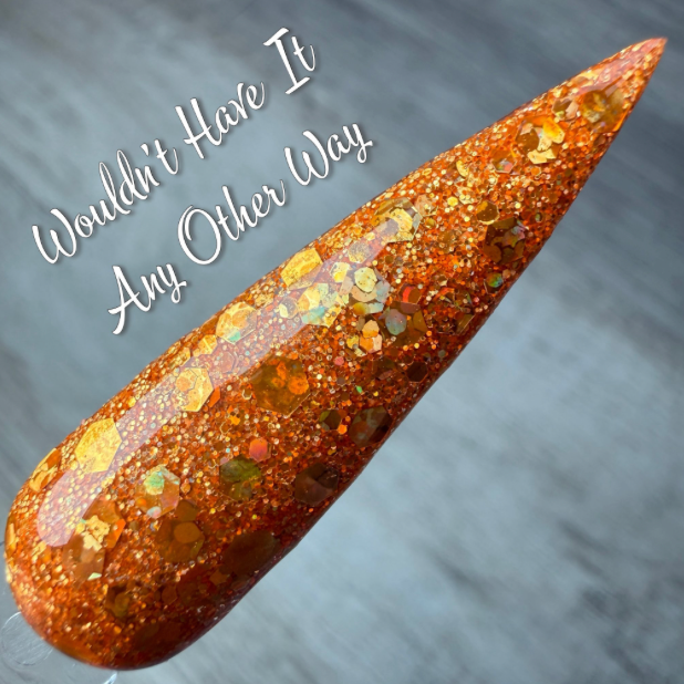 Wouldn't Have It Any Other Way is a chunky orangeish copper holographic glitter dip