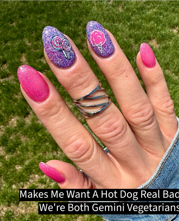 Makes Me Want A Hot Dog Real Bad is a sheer pink solid with silver shimmer throughout.