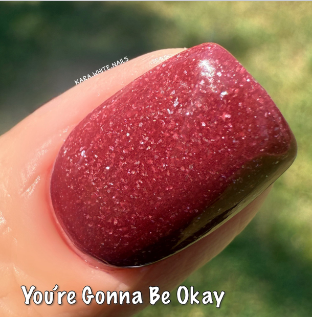 You're Gonna Be Okay is a maroon solid with a touch of brown. It has big shimmer throughout